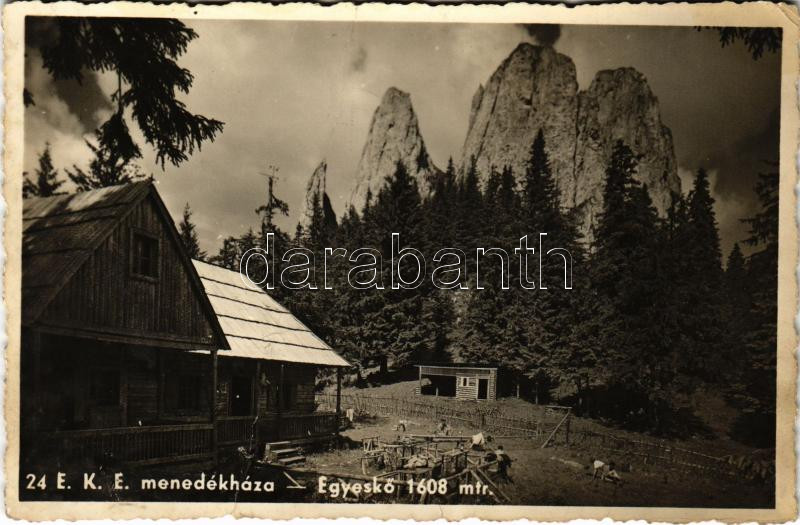 Egyes-kő, Egyeskő, Piatra Singuratica; E.K.E. menedékház, Csíki havas ... https://www.darabanth.com/de/437-Fernauktion/437.0/Ansichtskarten/Siebenburgen~1500006/Egyes-ko-Egyesko-Piatra-Singuratica-EKE-menedekhaz-Csiki-havas-rest-house-fa~II2855072