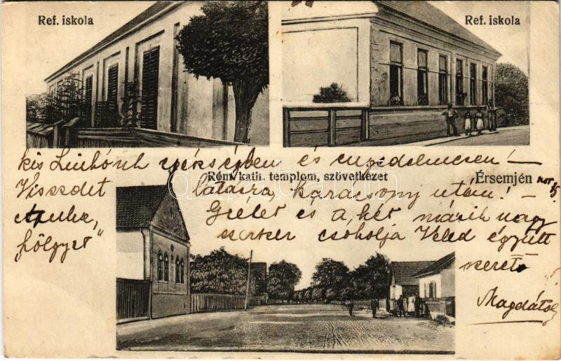 Érsemjén, Simian; Református iskola, Római katolikus templom, szövetke... https://www.darabanth.com/de/437-Fernauktion/437.0/Ansichtskarten/Siebenburgen~1500006/Ersemjen-Simian-Reformatus-iskola-Romai-katolikus-templom-szovetkezet-uzlete-Calvinist-s~II2841843