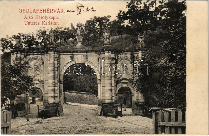 Gyulafehérvár, Karlsburg, Alba Iulia; Alsó Károly-kapu, katona. Petri ... https://www.darabanth.com/de/437-Fernauktion/437.0/Ansichtskarten/Siebenburgen~1500006/Gyulafehervar-Karlsburg-Alba-Iulia-Also-Karoly-kapu-katona-Petri-F-Vilmos-kiadasa-Unter~II2839008