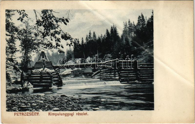 Beschreibung: Petrozsény, Petrosani; Kimpulunyági részlet, zsilip. Herz Henrik kiadása 1909. / Campu lui Neag / dam (fa)