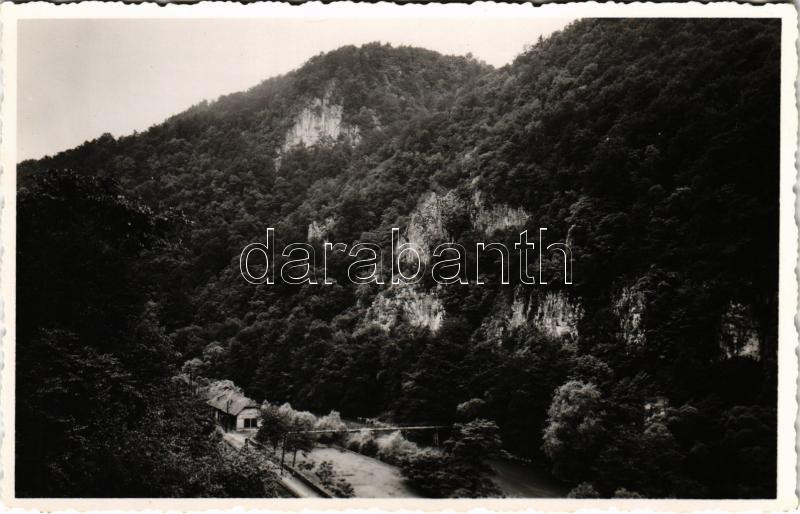 Beschreibung: Rév, Vad, Vadu Crisului; Zichy-cseppkőbarlang, vasúti megállóhely, vasútállomás / Pestera Vadu Crisului / railway station