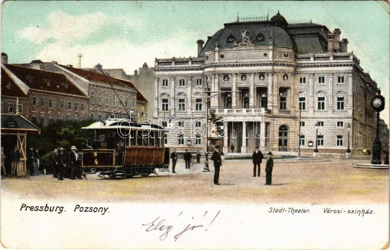 1909 Pozsony, Pressburg, Bratislava; Városi színház, villamos. Helioco... https://www.darabanth.com/de/437-Fernauktion/437.0/Ansichtskarten/Slowakei~1500007/1909-Pozsony-Pressburg-Bratislava-Varosi-szinhaz-villamos-Heliocolorkarte-von-Ottmar-Zieher-~II2853064