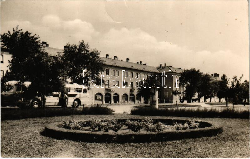 Beschreibung: 1962 Komárom, Komárno; Tér, autóbusz. Képzőművészeti Alap Kiadóvállalat / square, autobus