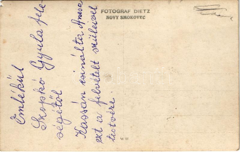 Beschreibung: Kassa, Kosice; családi fotó kirándulásról, háttérben a Kojsói-havas / family photo from a hiking. Fotograf Dietz Novy Smokovec (kis szakadás / small tear)