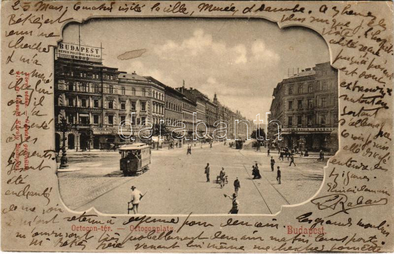 1901 Budapest VI. Octogon tér, villamos, Budapest képes politikai napi... https://www.darabanth.com/de/437-Fernauktion/437.0/Ansichtskarten/Ungarn~1500005/1901-Budapest-VI-Octogon-ter-villamos-Budapest-kepes-politikai-napilap-Abbazia-kavehaz-Pri~II2794997