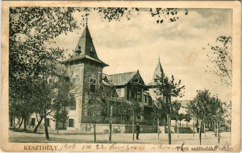 Beschreibung: 1909 Keszthely, Parti szállodák. Mérei Ignác kiadása 236/1905. (Rb)