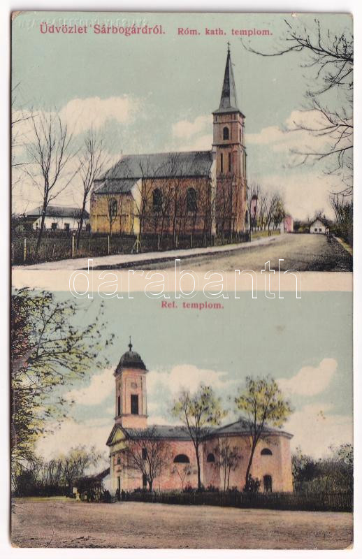 1913 Sárbogárd, Római katolikus és református templom (EB) https://www.darabanth.com/de/437-Fernauktion/437.0/Ansichtskarten/Ungarn~1500005/1913-Sarbogard-Romai-katolikus-es-reformatus-templom-EB~II2840439