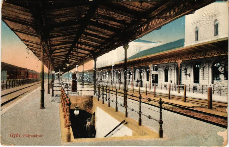1916 Győr, pályaudvar, vasútállomás, fafedeles váró. Vasúti levelezőla... https://www.darabanth.com/de/437-Fernauktion/437.0/Ansichtskarten/Ungarn~1500005/1916-Gyor-palyaudvar-vasutallomas-fafedeles-varo-Vasuti-levelezolaparusitas-10-1915~II2802139