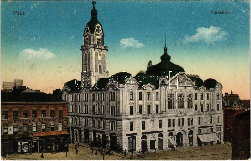 1921 Pécs, Városháza, Steiner Simon férfi szabó üzlete, Gyógyszertár. ... https://www.darabanth.com/de/437-Fernauktion/437.0/Ansichtskarten/Ungarn~1500005/1921-Pecs-Varoshaza-Steiner-Simon-ferfi-szabo-uzlete-Gyogyszertar-19-Vasuti-levelezola~II2846403