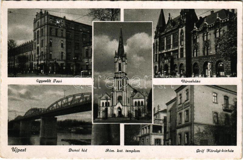 Budapest IV. Újpest, Dunai híd, Egyesült Izzó, Városháza, Római katoli... https://www.darabanth.com/de/437-Fernauktion/437.0/Ansichtskarten/Ungarn~1500005/Budapest-IV-Ujpest-Dunai-hid-Egyesult-Izzo-Varoshaza-Romai-katolikus-templom-Grof-Kar~II2802007