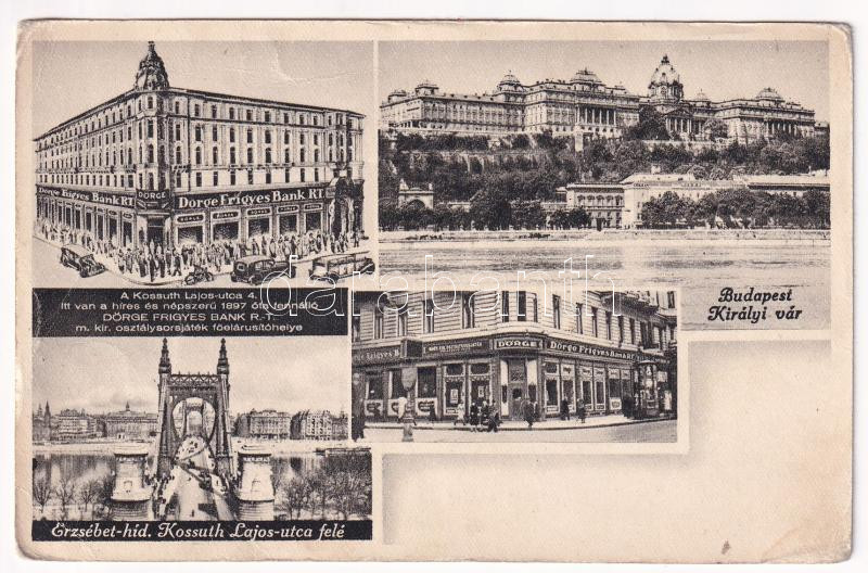 Budapest, Királyi vár, Dörge Frigyes Bank Rt. reklám, Erszébet híd, Ko... https://www.darabanth.com/de/437-Fernauktion/437.0/Ansichtskarten/Ungarn~1500005/Budapest-Kiralyi-var-Dorge-Frigyes-Bank-Rt-reklam-Erszebet-hid-Kossuth-Lajos-utca-gyurC5~II2846201