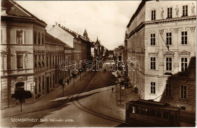 Szombathely, Széll Kálmán utca, villamos, Fábián üzlete https://www.darabanth.com/de/437-Fernauktion/437.0/Ansichtskarten/Ungarn~1500005/Szombathely-Szell-Kalman-utca-villamos-Fabian-uzlete~II2850935