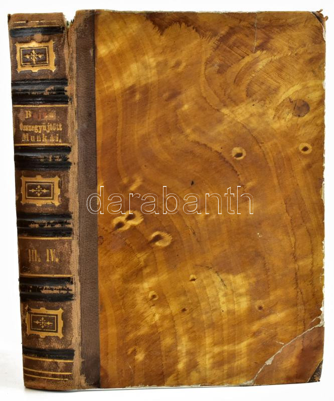 Beschreibung: Bajza József összegyűjtött munkái. III-IV. kötet. Pest, 1862-1863., Heckenast Gusztáv, 2+206+2;4+235 p. Második, bővített kiadás. Korabeli aranyozott álbordás gerincű félbőr-kötés, kopott borítóval, sérült gerinccel, foltos lapokkal.