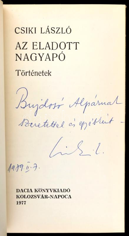 Csiki László 3 műve, a szerző által dedikáltak: Álkulcsok, Az eladott nagyapó, Kísértethajók. Kolozsvár-Bp., 1977-1986, Dacia-Magvető. Kiadói egészvászon-kötés, kiadói papír védőborítóban. A szerző, Csiki László (1944-2008) költő, a Magvető kiadó szerkesztője által Bujdosó Alpár (1935-2021) költő, mérnök, a Magyar Műhely szerkesztője a magyar avantgarde kiemelkedő alakja részére DEDIKÁLT példányok.