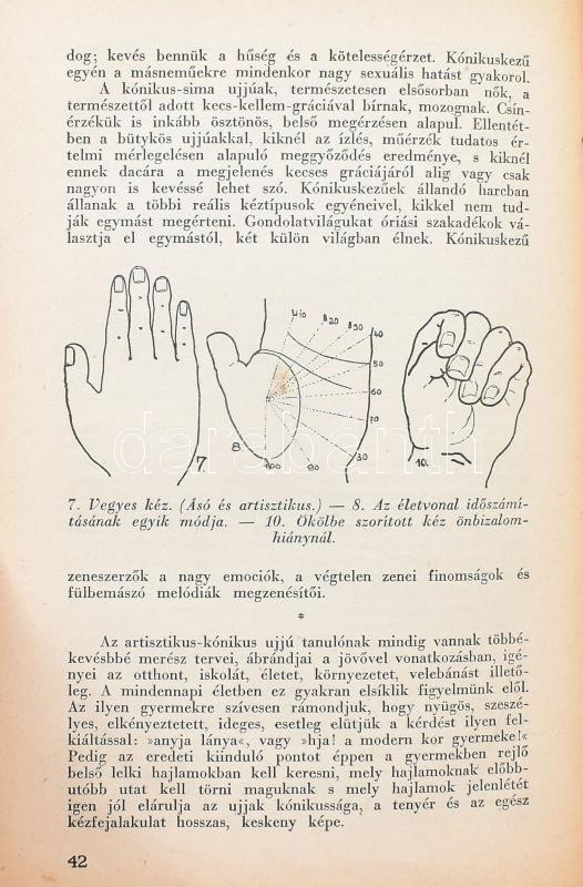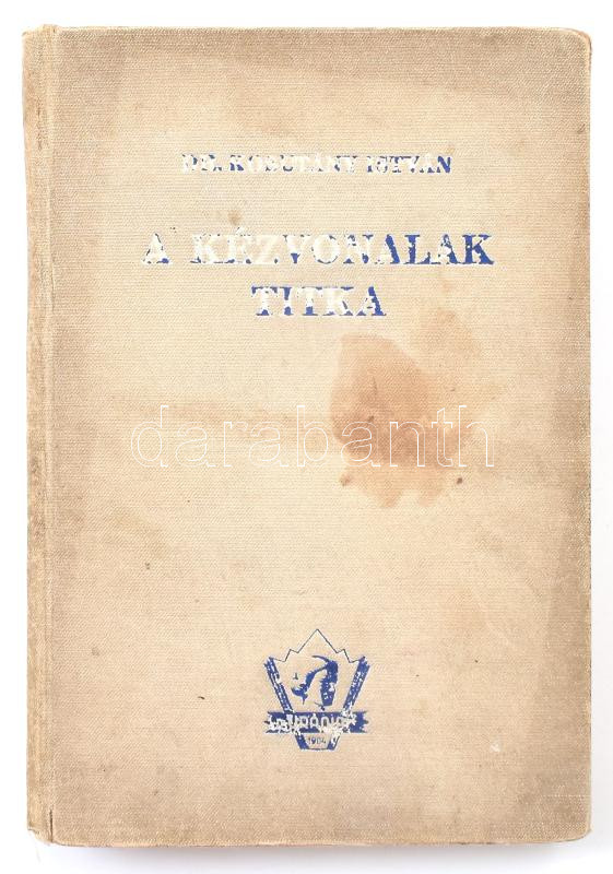 Kosutányi István: A kézvonalak titka. Tudományos gyakorlati kéz-tan. Diagnózis és prognózis a kézből. Bp., 1937., Székely. Kiadói kopott, foltos egészvászon-kötés.