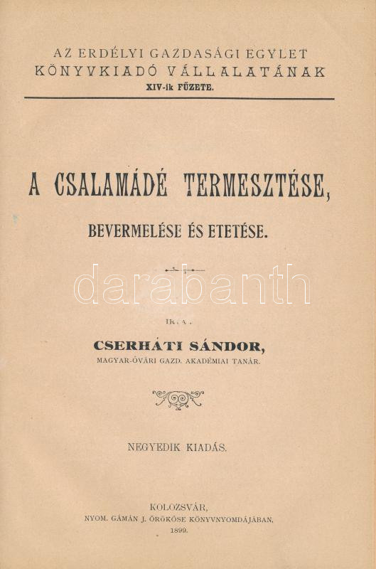 Cserháti Sándor: A csalamádé termesztése, bevermelése és etetése. Kolo... https://www.darabanth.com/de/437-Fernauktion/437.0/Bucher/Bucher-Gastronomie-und-Gartnerei~1000017/Cserhati-Sandor-A-csalamade-termesztese-bevermelese-es-etetese-Kolozsvar-1899-Gaman-~II2852346