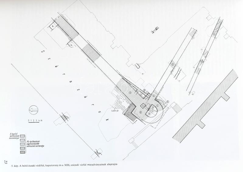 Gerevich László: A budai vár feltárása. Bp.,1966, Akadémiai kiadó, 352 p.+4 (kihajtható melléklettel) t. Számos fekete-fehér szövegközti képpel, ábrával, alaprajzzal, vázlattal illusztrált. A 321. oldaltól fekete-fehér képekkel illusztrált. Kiadói egészvászon-kötés, kiadói papír védőborítóban, a papír védőborítón kopásnyomokkal, de alapvetően jó állapotban. Megjelent 1600 példányban.