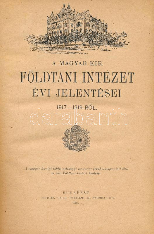 1917-1919 A Magyar Királyi Földtani Intézet évi jelentései az 1917-1919-ről. Bp., 1923., Bethlen Gábor, 300 p. Átkötött félvászon-kötés.