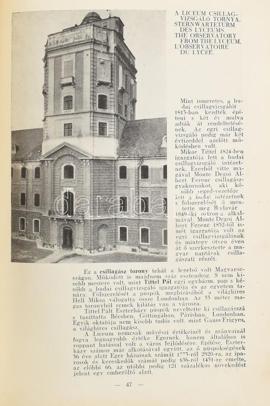 Breznay Imre - Karczos Béla: Egri képeskönyv. Eger, 1937, Egri Nyomda Rt., 126+(1) p. Szövegközi fekete-fehér képekkel illusztrált. Korabeli félvászon-kötésben, kissé sérült, kopott borítóval, a címlapon Soós Imre (1910-1997) levéltáros autográf névbejegyzésével.