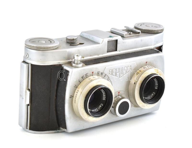 Belca Werk VEB Belplasca sztereo fényképezőgép Carl Zeiss Tessar 3,5/37,5mm objektívvel, kissé megviselt állapotban
