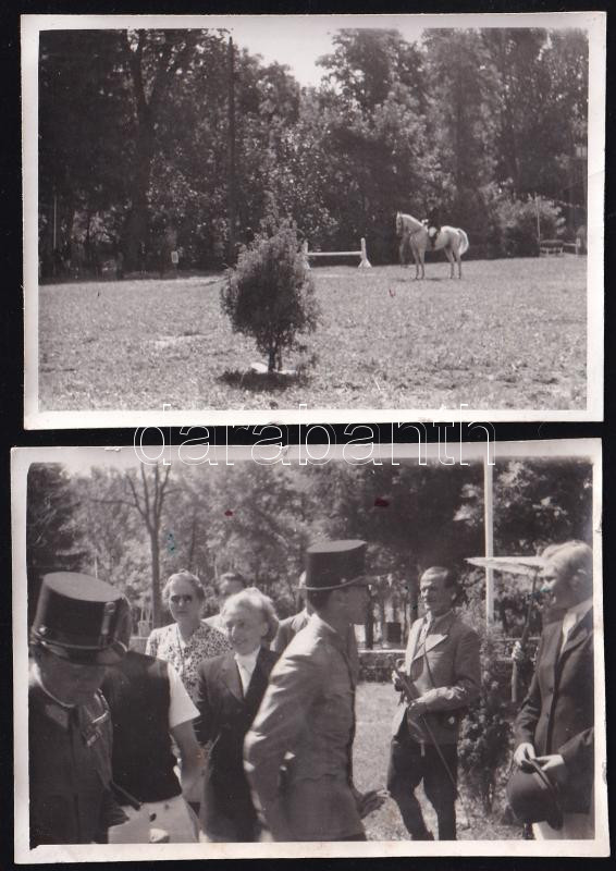 Beschreibung: 1942 A Balatonföldváron tartott lovaglónapok női díjlovaglásáról és a díjátadóról készített 2 db fotó, hátoldalon felirattal, 6×8,5 cm