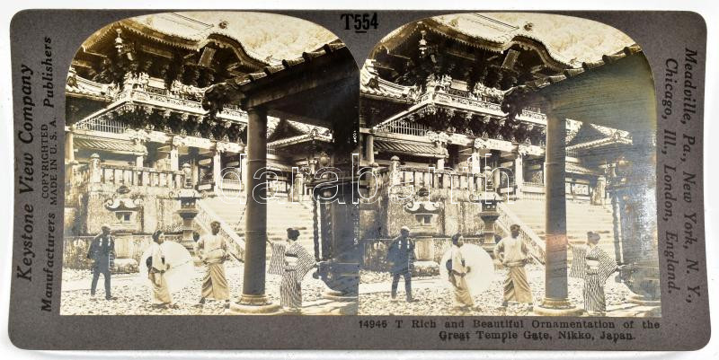 Beschreibung: cca 1910 "Rich and Beautiful Ornamentation of the Great Temple Gate, Nikko, Japan", sztereófotó, Keystone View Co. [USA], 18x8,5 cm
