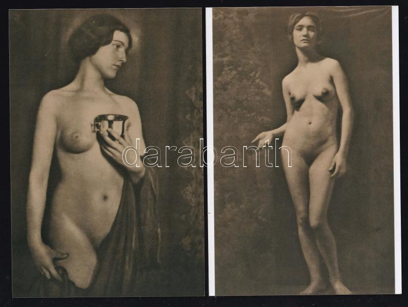 Beschreibung: cca 1920 Pécsi József (1889-1956) fényképész és fotóművész hagyatékából a ,,Der Akt" című fotómappa két alkotása, 2 db modern nagyítás, 15x10 cm