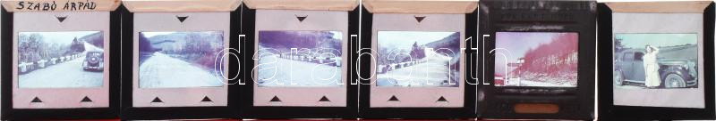 Beschreibung: cca 1940 Autós utazás a hegyek között, BMW 326 típusú autóval, beazonosítandó helyszín, 6 db színes dia, 5x5 cm