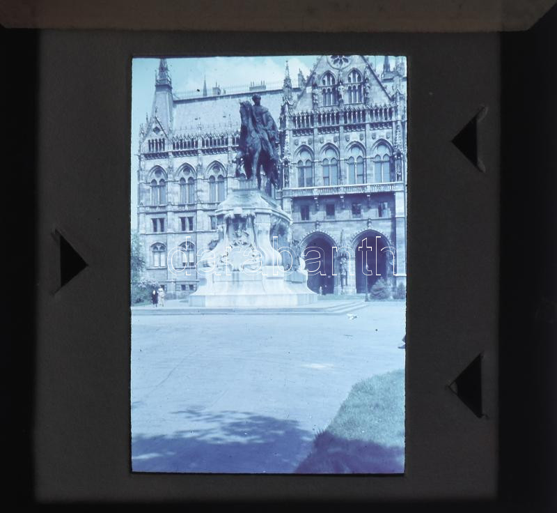 Beschreibung: cca 1940 Budapest, gróf Andrássy Gyula szobor a Parlamentnél, 1 db színes dia, 5x5 cm
