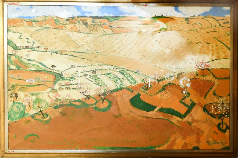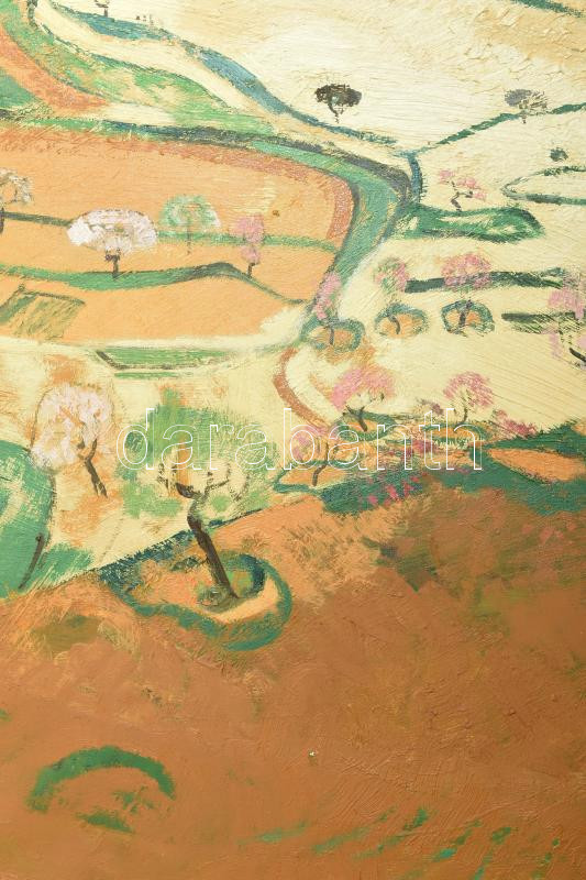 Batári László (1920-1997): Őszibarackos Békásmegyeren, 1987. Olaj, vászon. Jelezve jobbra lent. Hátoldalán autográf felirattal. Fakeretben. 100x150cm. KIZÁRÓLAG SZEMÉLYES ÁTVÉTEL, NEM POSTÁZZUK! / Oil on canvas, signed lower right, framed. ONLY PERSONAL COLLECTION AT OUR OFFICE