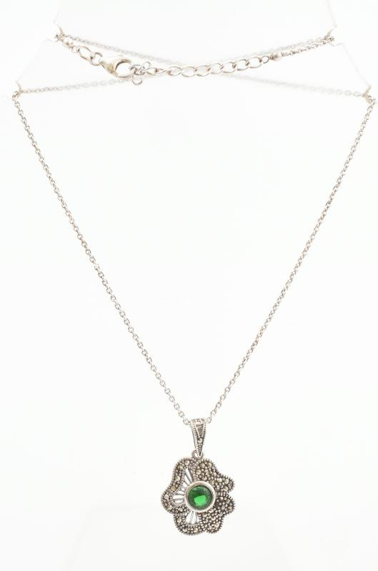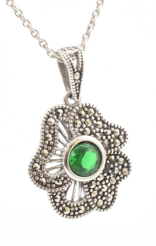 Beschreibung: Ezüst(Ag) nyaklánc zöld köves medállal, jelzett, állítható h: max. 44 cm, bruttó: 7,3 g