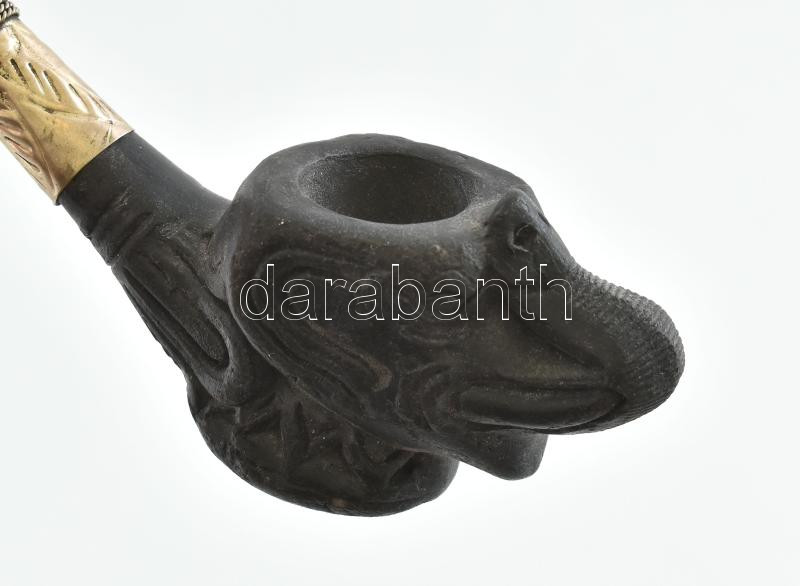 Beschreibung: Kerámia ópium pipa Elefánt fejjel. Fém borítással 17 cm