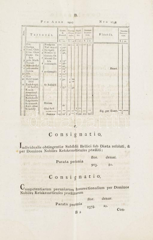 Beschreibung: 1802 Kecskemét város nemeseinek panasz felirata az adóterhek miatt. 12 p