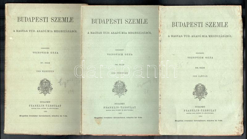 1919 Budapesti Szemle, az MTA megbízásából, 3 db szám (január, február... https://www.darabanth.com/de/437-Fernauktion/437.0/Kunst-Dokumente-andere-Sammelgebiete/Drucksachen~1000009/1919-Budapesti-Szemle-az-MTA-megbizasabol-3-db-szam-januar-februar-marcius-szerk-Vo~II2851974