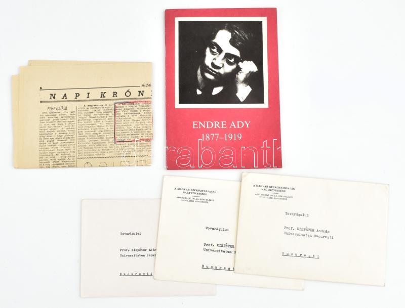 1977 Ady Endre kiállítás Romániában - versfordítások + nagykövetségi m... https://www.darabanth.com/de/437-Fernauktion/437.0/Kunst-Dokumente-andere-Sammelgebiete/Drucksachen~1000009/1977-Ady-Endre-kiallitas-Romaniaban-versforditasok-plus-nagykovetsegi-meghivok-a-kiallit~II2854363