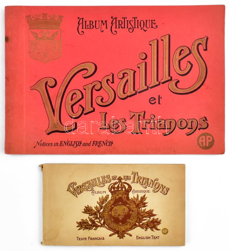 Beschreibung: cca 1900-1910 Versailles et les Trianons, 2 db képes album, 30,5x21 cm és 20x11,5 cm méretben