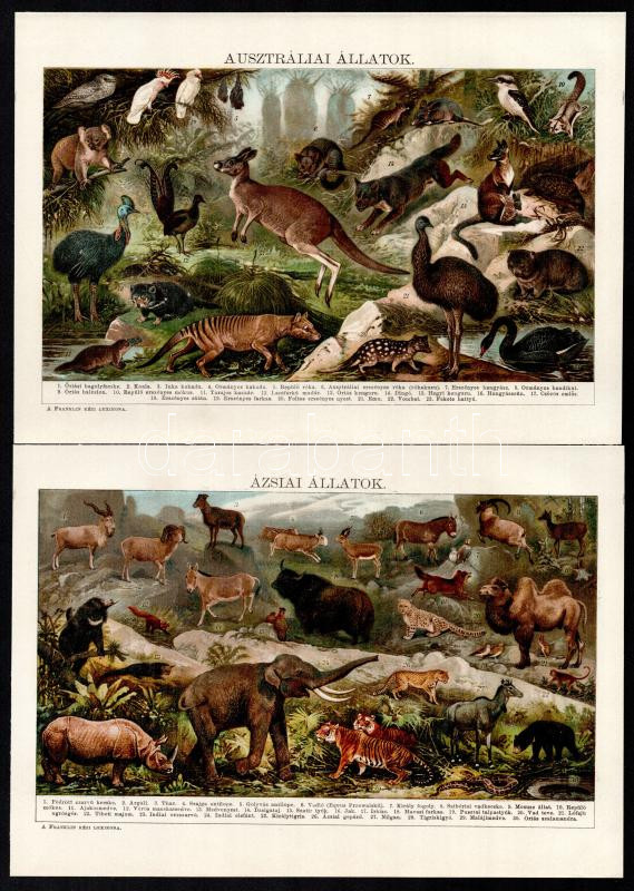 cca 1900 Afrika, Amerika, Ausztrália, Ázsia állatai, 4 db litográf old... https://www.darabanth.com/de/437-Fernauktion/437.0/Kunst-Dokumente-andere-Sammelgebiete/Drucksachen~1000009/cca-1900-Afrika-Amerika-Ausztralia-Azsia-allatai-4-db-litograf-oldal-17C39724-cm~II2840050