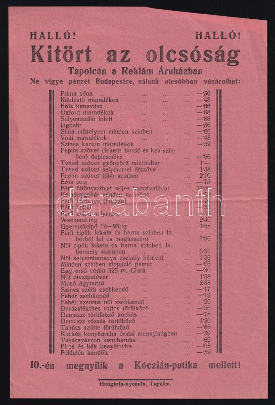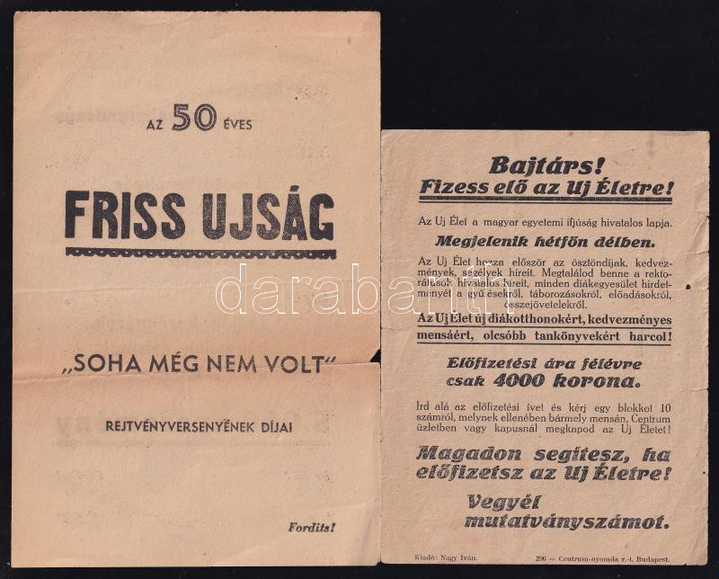Beschreibung: cca 1920-1930 3 db reklámnyomtatvány