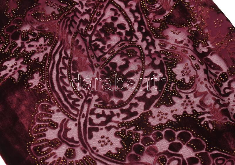 Beschreibung: Bordó áttört mintás sál, 34x155 cm