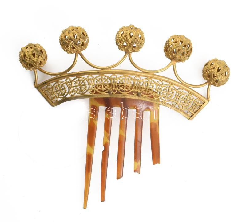 Beschreibung: Koronás hajdísz, sérült, 11,5×13 cm
