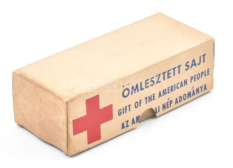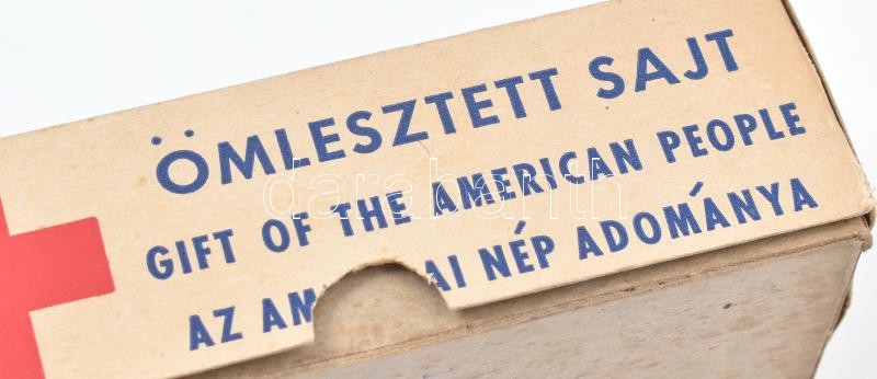 Papír doboz, "Ömlesztett sajt / Gift of the American people"... https://www.darabanth.com/de/437-Fernauktion/437.0/Kunst-Dokumente-andere-Sammelgebiete/Flohmarkt~500014/Papir-doboz-Omlesztett-sajt-Gift-of-the-American-people-felirattal-kisse-foltos-6-5x16-cm~II2849964