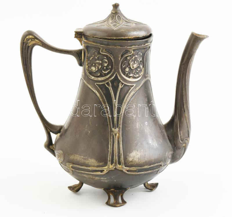 Szecessziós ón kávés kiöntő, teteje sérült, hiányos 19 cm https://www.darabanth.com/de/437-Fernauktion/437.0/Kunst-Dokumente-andere-Sammelgebiete/Flohmarkt~500014/Szecesszios-on-kaves-kionto-teteje-serult-hianyos-19-cm~II2844804