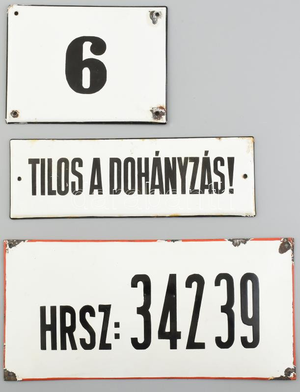 Tilos a dohányzás zománc tábla 30x10 cm + 2 db egyéb zománc tábla https://www.darabanth.com/de/437-Fernauktion/437.0/Kunst-Dokumente-andere-Sammelgebiete/Flohmarkt~500014/Tilos-a-dohanyzas-zomanc-tabla-30x10-cm-plus-2-db-egyeb-zomanc-tabla~II2837116