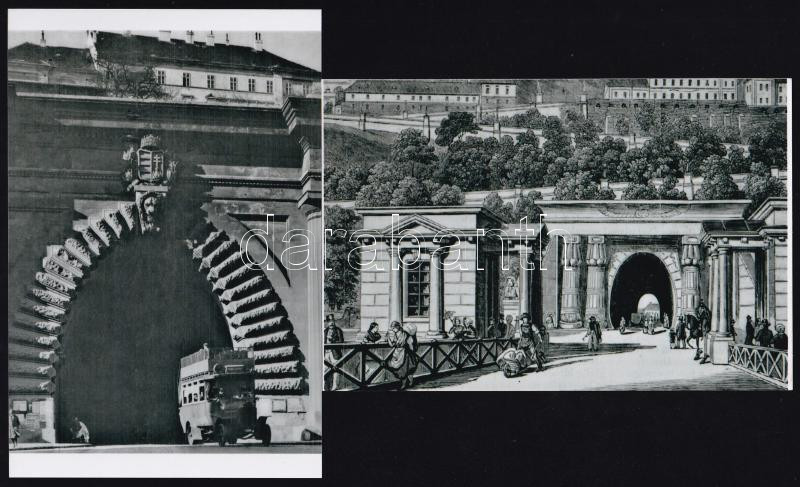 Buda, a Várhegy alatti alagút ábrázolások, cca 1860-1930 között készült képek, az egyik metszetes illusztráció fotópapíron, 3 db modern nagyítás, 23,8x17,8 cm és 10x15 cm
