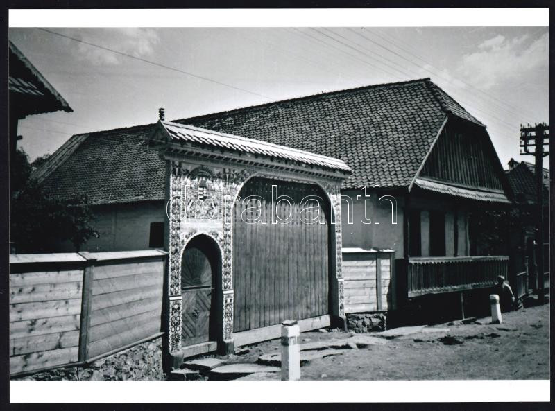 cca 1941 Erdély, egy új székelykapuval - rajta a magyar címer - ünnepelt a ház lakója Erdély visszacsatolása idején, Kerny István (1879-1963) budapesti fotóművész hagyatékából 1 db modern nagyítás, 15x21 cm