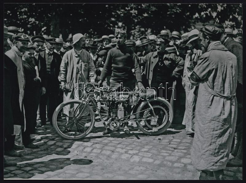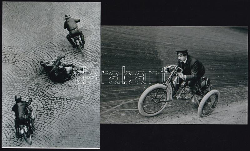 cca 1950 előtt készült felvételek régi, kétkerekű és háromkerekű motorok versenyéről, ill. versenyzőiről, 3 db modern nagyítás a néhai Lapkiadó Vállalat fotólaborjának archívumából, 10x15 cm és 17,8x23,8 cm