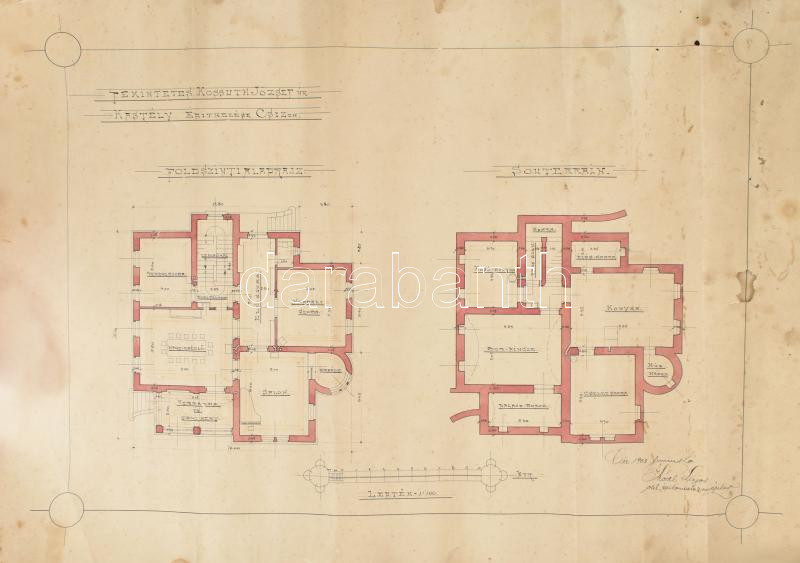 1903 Csíz/Cíz, Kossuth József csízi kastélyának tervrajzai, 2 db, folt... https://www.darabanth.com/de/437-Fernauktion/437.0/Kunst-Dokumente-andere-Sammelgebiete/Historische-Dokumenten-Handschriften~500021/1903-CsizCiz-Kossuth-Jozsef-csizi-kastelyanak-tervrajzai-2-db-foltosak-serulesekkel-4~II2854889
