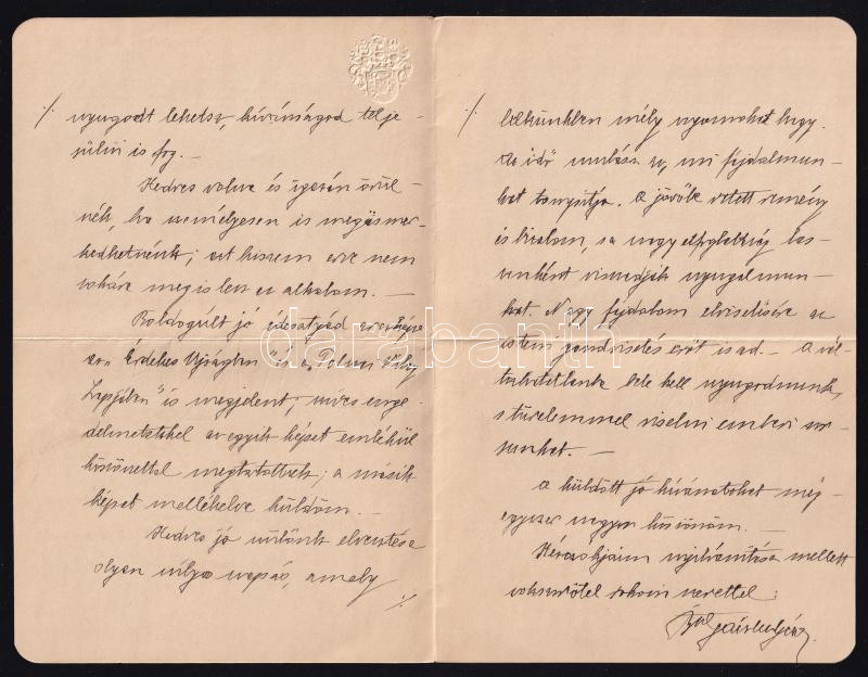 Beschreibung: 1915 báró Gaizler Géza saját kézzel írt levele nemesi címeres levélpapíron