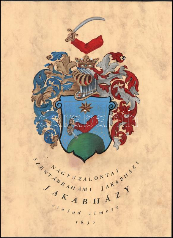 Nagyszalontai Jakabházy család címere, kézzel festett címerrajz, 42×29... https://www.darabanth.com/de/437-Fernauktion/437.0/Kunst-Dokumente-andere-Sammelgebiete/Historische-Dokumenten-Handschriften~500021/Nagyszalontai-Jakabhazy-csalad-cimere-kezzel-festett-cimerrajz-42C39729-5-cm~II2852830