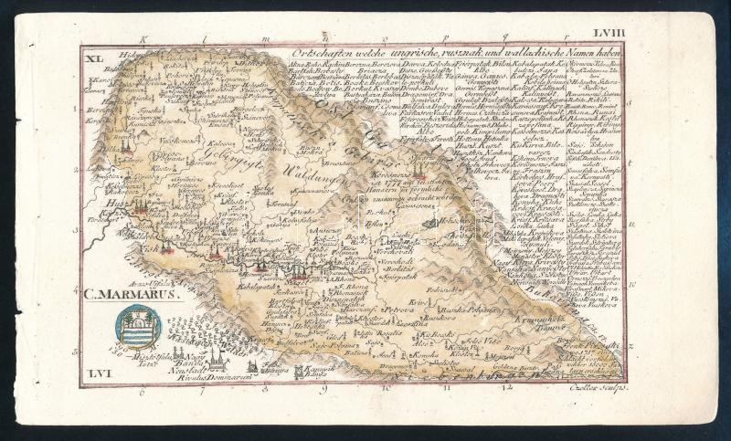1804 Czetter Sámuel (1765-1829 k.): Máramaros vármegye térképe. C[omitatus] Maramarus, rajta: Huszt, Máramarossziget, Kőrösmező, In: [Korabinszky János Mátyás]: Korabinsky, Johann Matthias: Atlas Regni Hungariae Portatilis LVIII. Bécs, 1804. Schaumburg und Compagnie, színezett rézmetszet,10,5x16,5 cm.